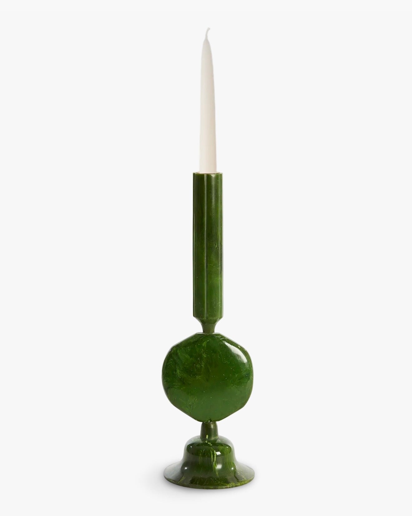 Ces bougeoirs en céramique vert profond jouent avec les volumes pour un effet sculptural tout en élégance.